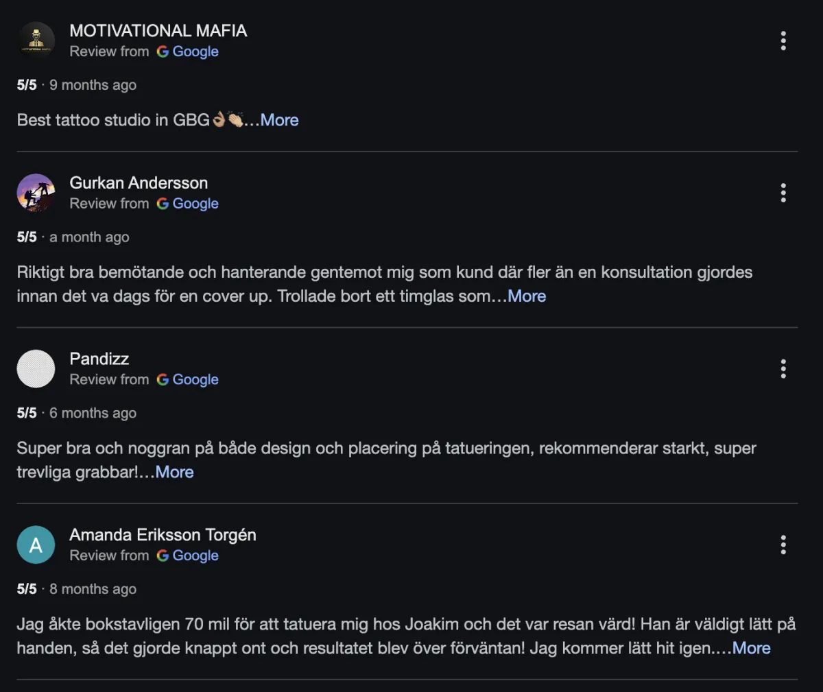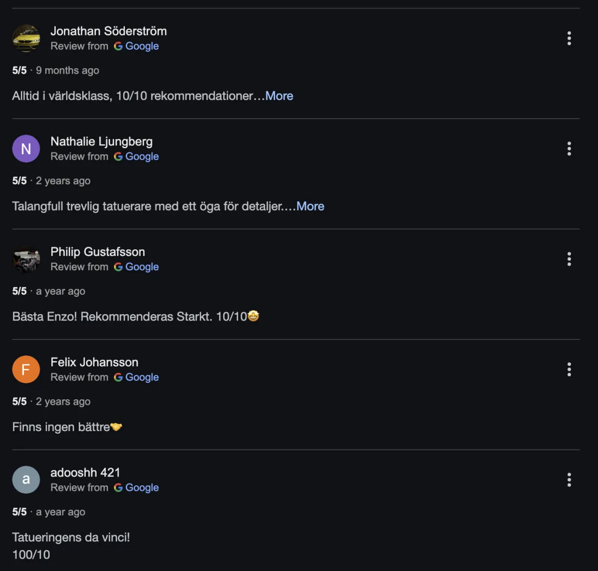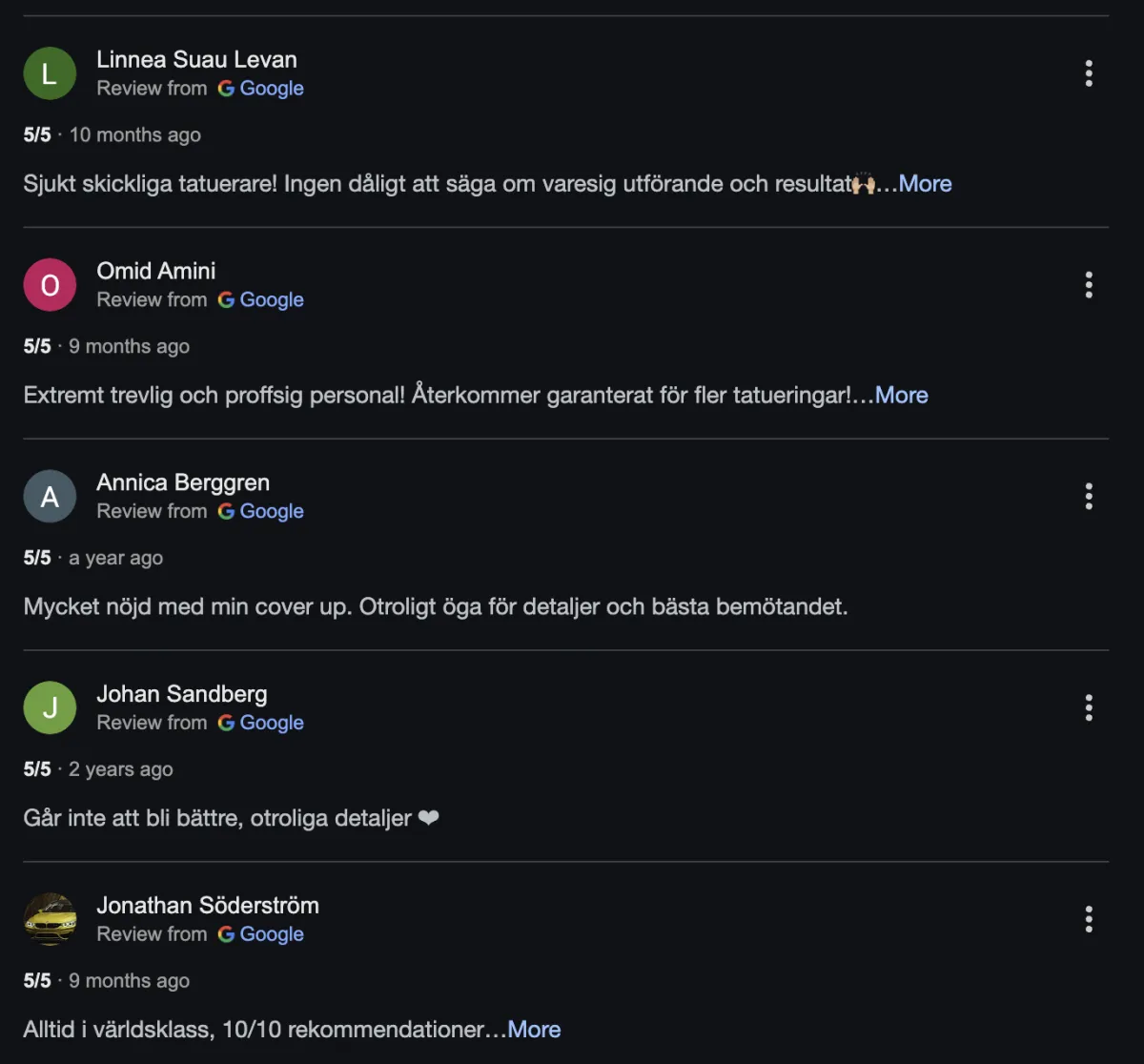 1000-tals nöjda kunder har redan upplevt våra tatuerare i världsklass