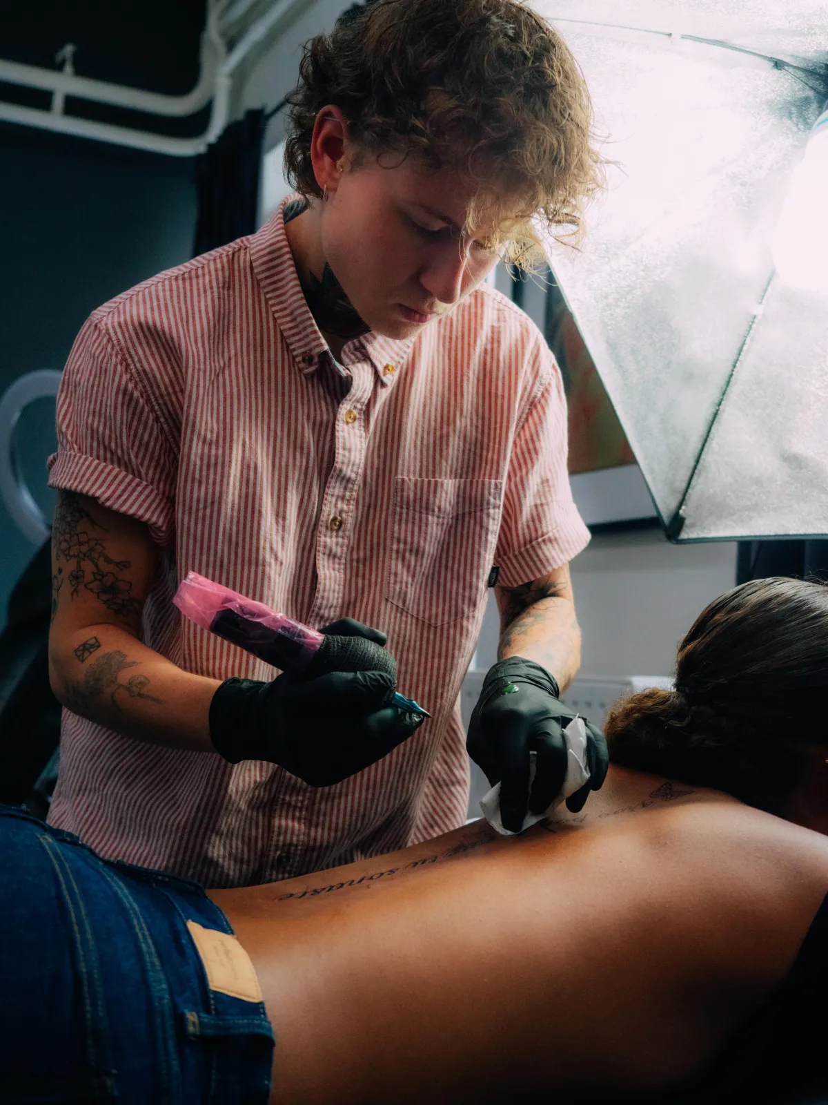 Vi är ett team på sex dedikerade tatuerare med bred kompetens inom allt från traditionell och black work till realism och black & grey. Oavsett om du drömmer om ett stort konstverk med svarta skuggor och mjuka övergångar eller en liten, stilren gadd med minimalistiska linjer – så kan du känna dig trygg i våra händer.